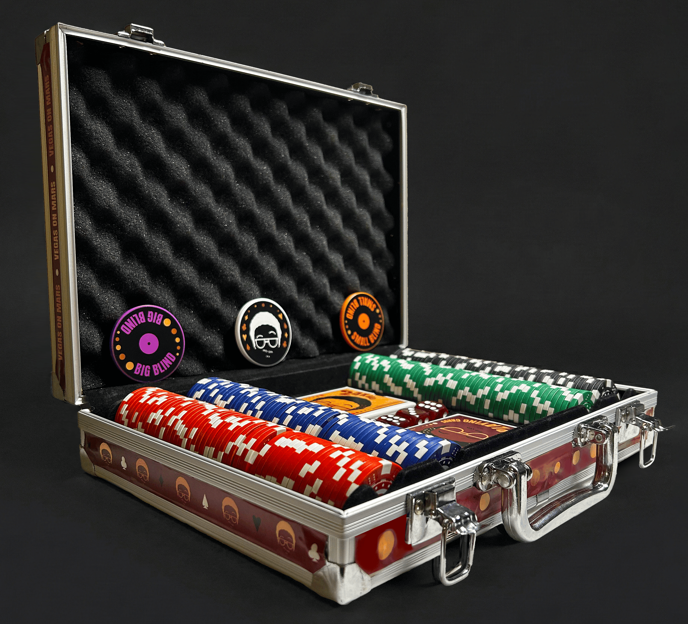 Bruno Mars was my chosen artist, and I created the “Vegas on Mars” campaign. For a USA-based tour where Bruno Mars would visit all 50 states and bring the energy of Las Vegas to each stadium, I created an entire line of casino-based goods. My physical deliverable was a poker set, complete with 200 poker chips, 3 special chips (blinds and dealer), 2 decks of cards, 6 dice, and a carrying case to hold everything together, designed to evoke the unforgettable spirit of Las Vegas casinos and culture.